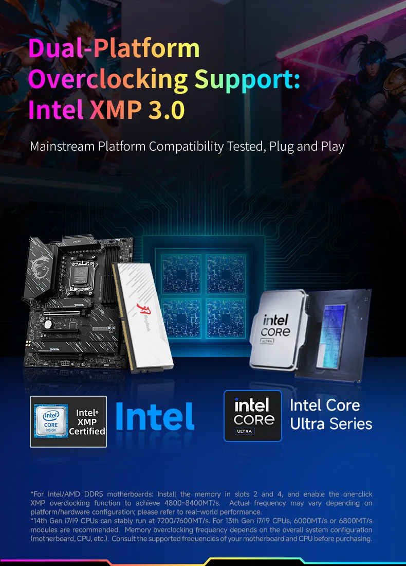 Módulo de memória DDR5 suporta Intel® Overclocking XMP 3.0/AMD EXPO