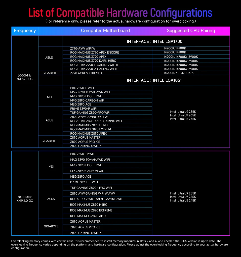 Múltiplas frequências disponíveis: 8000/8400MT/s